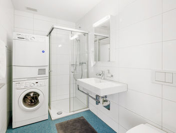 Das Bad ist frisch und zeitlos gestaltet, ebenso die Schlafzimmer. Alles wirkt strukturiert, ordentlich und durchdacht. Eine Wohnung, die Stil und Funktion elegant vereint.
